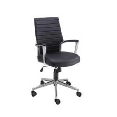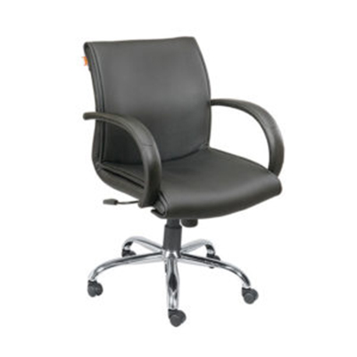 Specification Medium Back Chair, Pipe Frame, PU Chrome Arm, Gaslift, Chrome Base, Leatherite Tapestry
