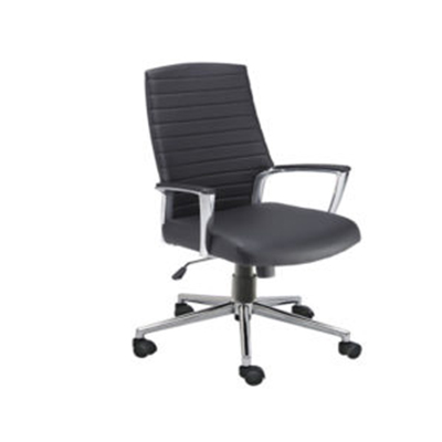 Specification Medium Back Chair, Pipe Chrome Arm, Gaslift, Chrome Plated Base, Leatherite Tapestry