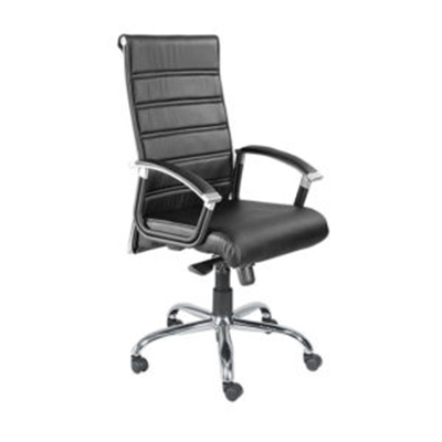 Specification High Back Chair, Pipe Chrome Arm, Gaslift, Chrome Plated Base, Leatherite Tapestry
