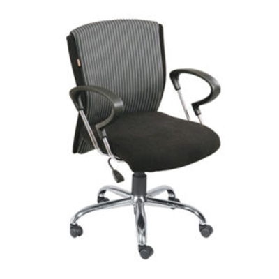 Specification Medium Back Chair, PU Chrome Arm, Chrome Plated Base, Gaslift, Fabric Tapestry