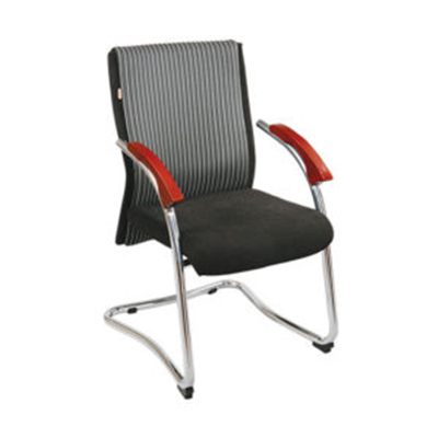 Specification Visitor Chair, Wooden Arm, Chrome Plated Pipe Frame, Fabric Tapestry