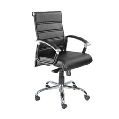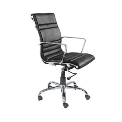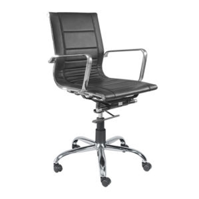Specification Medium Back Chair, Pipe Chrome Arm, Gaslift, Chrome Plated Base, Leatherite Tapestry