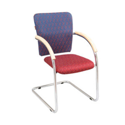 Specification Visitor Chair, Wooden Arm, Chrome Plated Pipe Frame, Fabric Tapestry